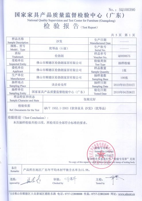 沙发检测报告